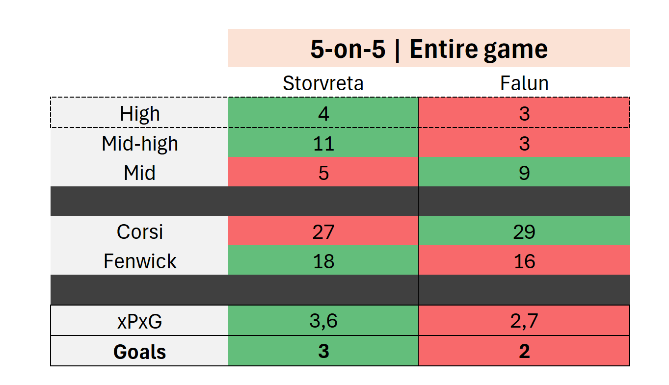 Five-on-five, the numbers had Storvreta as the team which deserved the win, but not by a huge margain.