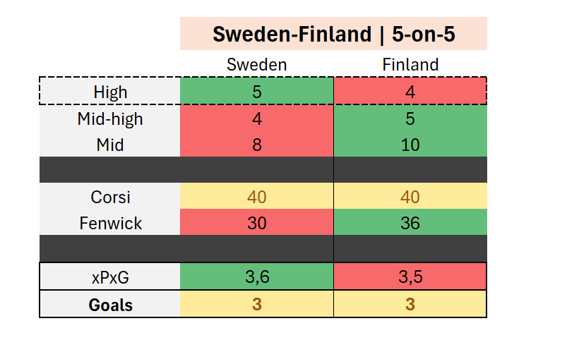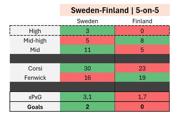 In terms of scoring, the five-on-five scoring ended up 2-0 in favour of Sweden.