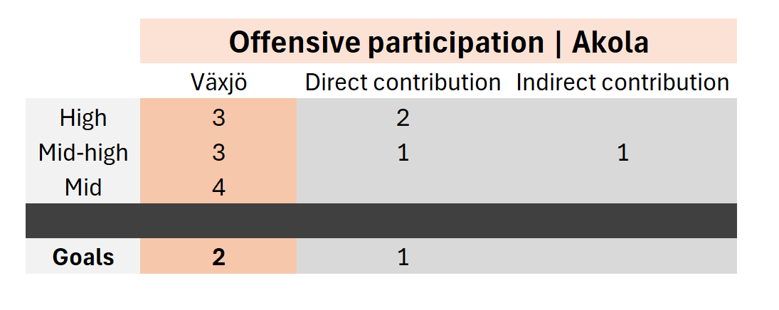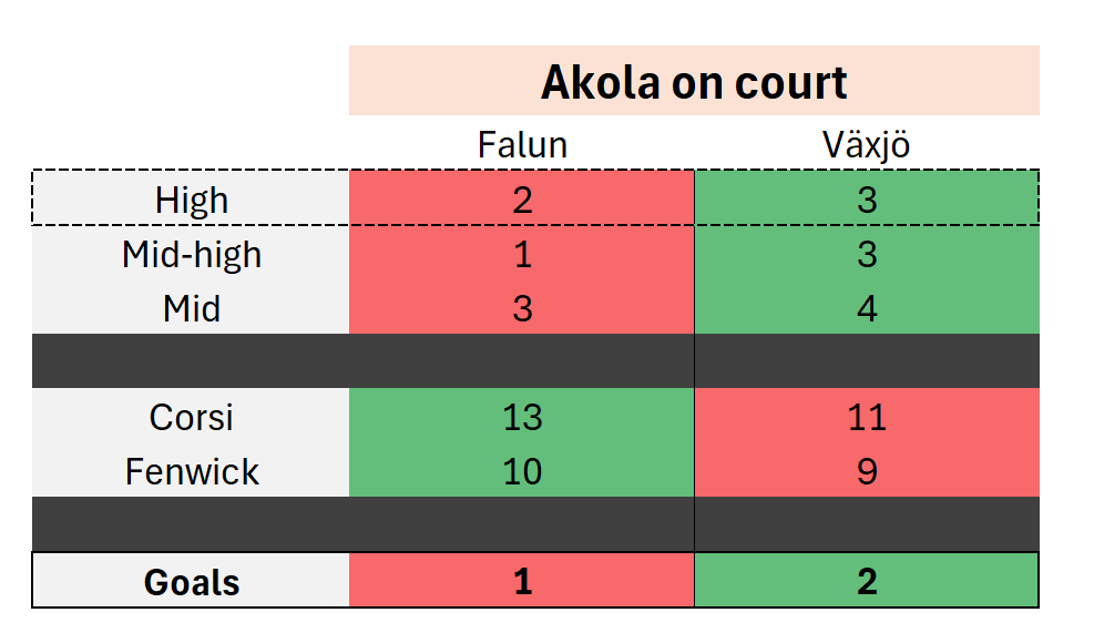 So let us look at how Växjö did during the Andersson, Akola and non-Andersson and non-Akola minutes of this game.