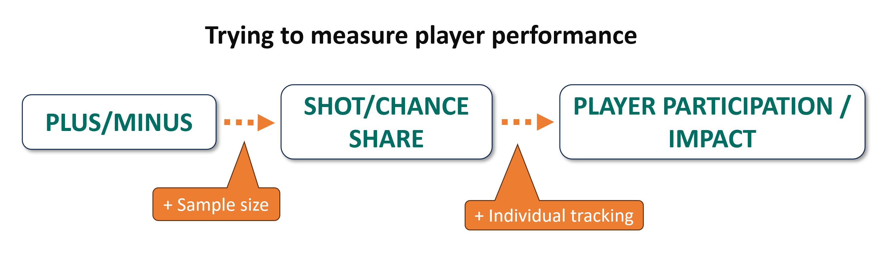 In the 1950s, Montreal Canadiens in the NHL started tracking plus/minus for their players. The goal of course, was to see what players helped the team with the ultimate goal of team sports – outscoring the opponent!