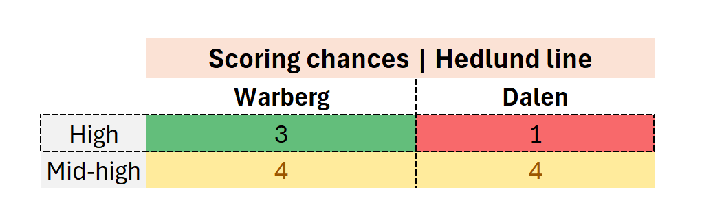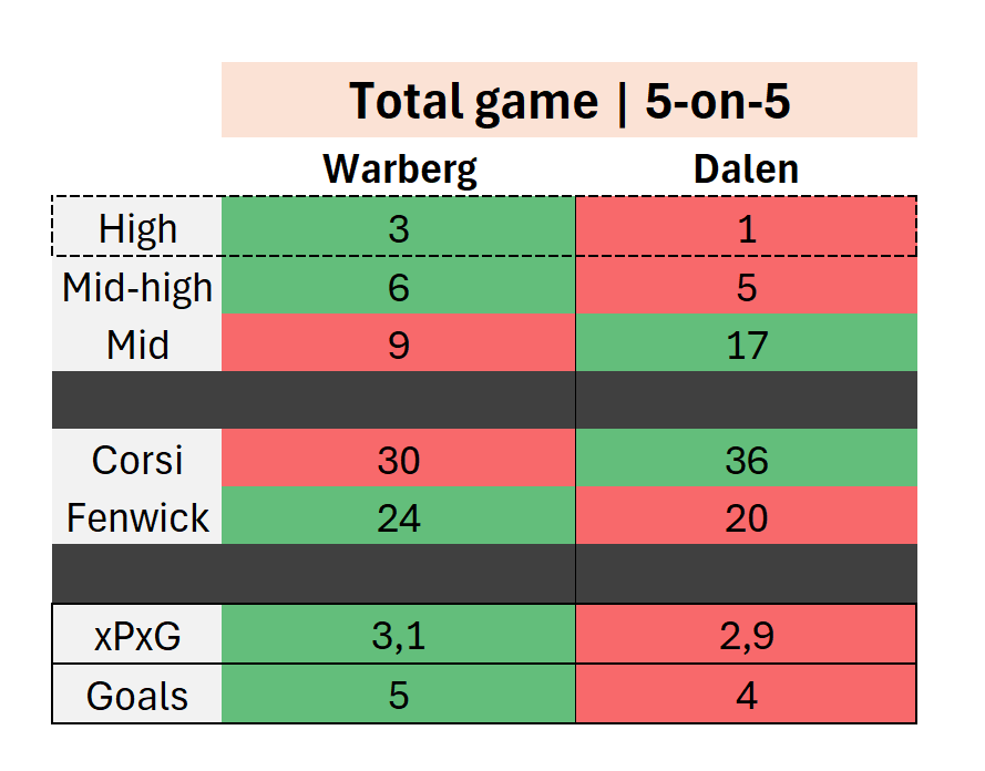 So let us do what we always do here. We look at a mixture of numbers and eyetest takeaways from the Dalen-Warberg game. And we try to learn along the ride.