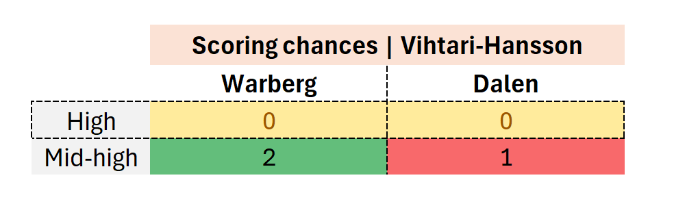 With this in the backpack, let us go and have a look at how the game between Warberg and Dalen played out, focusing of the approach of the team in most need of points – Dalen. We will also look at the concept of upgrading scoring chances, and what it means.